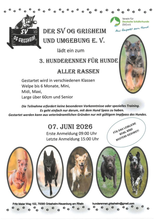 Am 07.06.2026 veranstalten wir ein Hunderennen für jeden Hund.