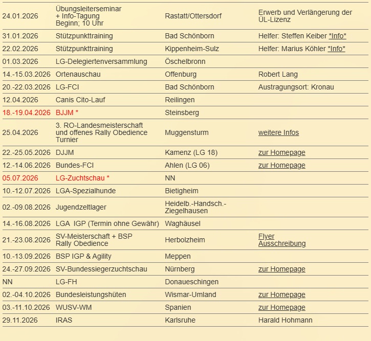 Herbstprüfung SK, BH, IBgH 1-3, IGP 1-3, IFH 1-2, IGP-ZTP, SVAD, Augsburger Modell und alle Unterprüfungen Richter : noch offen |